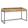 - Features a flip down pull-out keyboard tray, two (2) drawers with metal drawer glides and round bronze knobs