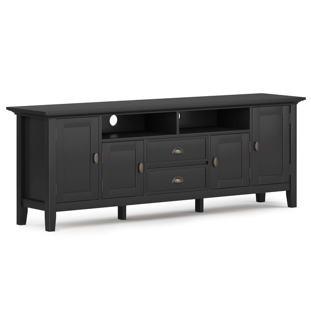 - Extra wide TV Stand is perfect for TVs up to 80 inches includes cord management cut-outs for easy installation of TV and media components
