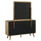 Achieve the perfect blend of style and functionality with this mid-century modern dresser and mirror set. The dresser, constructed with pine, engineered wood, and walnut veneer, features six spacious drawers with felt-lined top drawers for organizing wardrobe essentials. Rounded edges, tapered legs, and a clean silhouette highlight the retro-modern appeal of this timeless duo. The matching mirror completes the set with its sophisticated design and polished details.