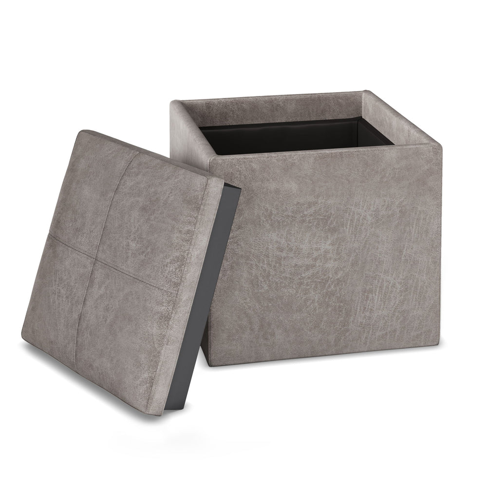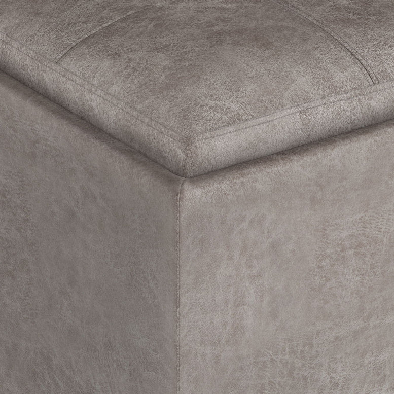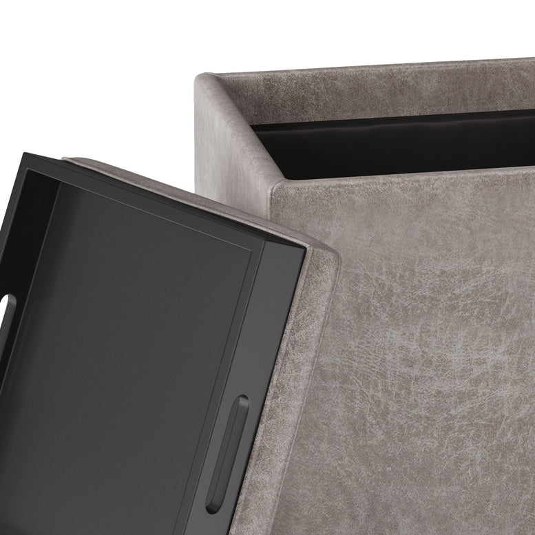 Rockwood - Cube Storage Ottoman With Tray - Distressed Gray Taupe