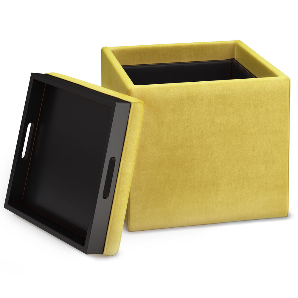 Rockwood - Cube Storage Ottoman With Tray - Dijon Yellow