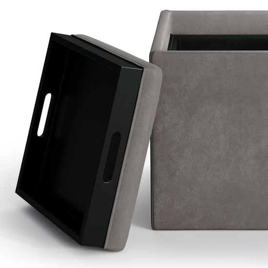 Rockwood - Cube Storage Ottoman With Tray - Slate Gray