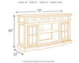 The beauty of this TV stand will immediately engage you. The slight breakfront shape is a rare find and an ideal fit among traditional and eclectic tastes. Soft black undertones highlight the warm finish. Multiple cubbies and glass-door enclosed shelves organize your audio/video components and plenty of extras. Sold separately, an electric fireplace fits neatly in the center cubby.