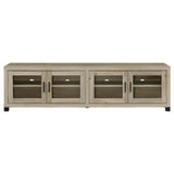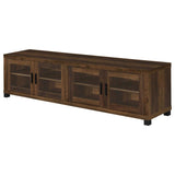 Elevate your living area with our rustic urban TV stand, a perfect blend of timeless aesthetics and modern functionality. Highlighted by striking black hardware accents, this piece boasts four ample compartments that ensure your media devices are organized and easily accessible. A sophisticated glass door juxtaposed with fixed shelves adds both style and practicality. For those seeking added storage and a cohesive look, pair this stand with our matching media towers. The stand's boxy silhouette, complemented by smooth surfaces and versatile adjustable shelves, offers a contemporary touch, ensuring it's not just a furniture piece but a statement of design excellence.