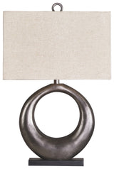 Part sculpture and totally beautiful, this table lamp lets you delight in the art of lighting. The aesthetic may be contemporary and refined, but its antique silvertone cast aluminum infuses a raw element for beautiful balance.
