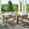 Elevate the appeal of easy-breezy living with this outdoor package. Made to look like wood yet durable enough to weather the elements, this rectangular table is sure to serve you and your besties well, year after year. Its cool character is made for warm memories; an umbrella hole offers the option of sweet shade. The gently curved chairs feature cushions wrapped in Nuvella+™ high-performance fabric for plush refinement.