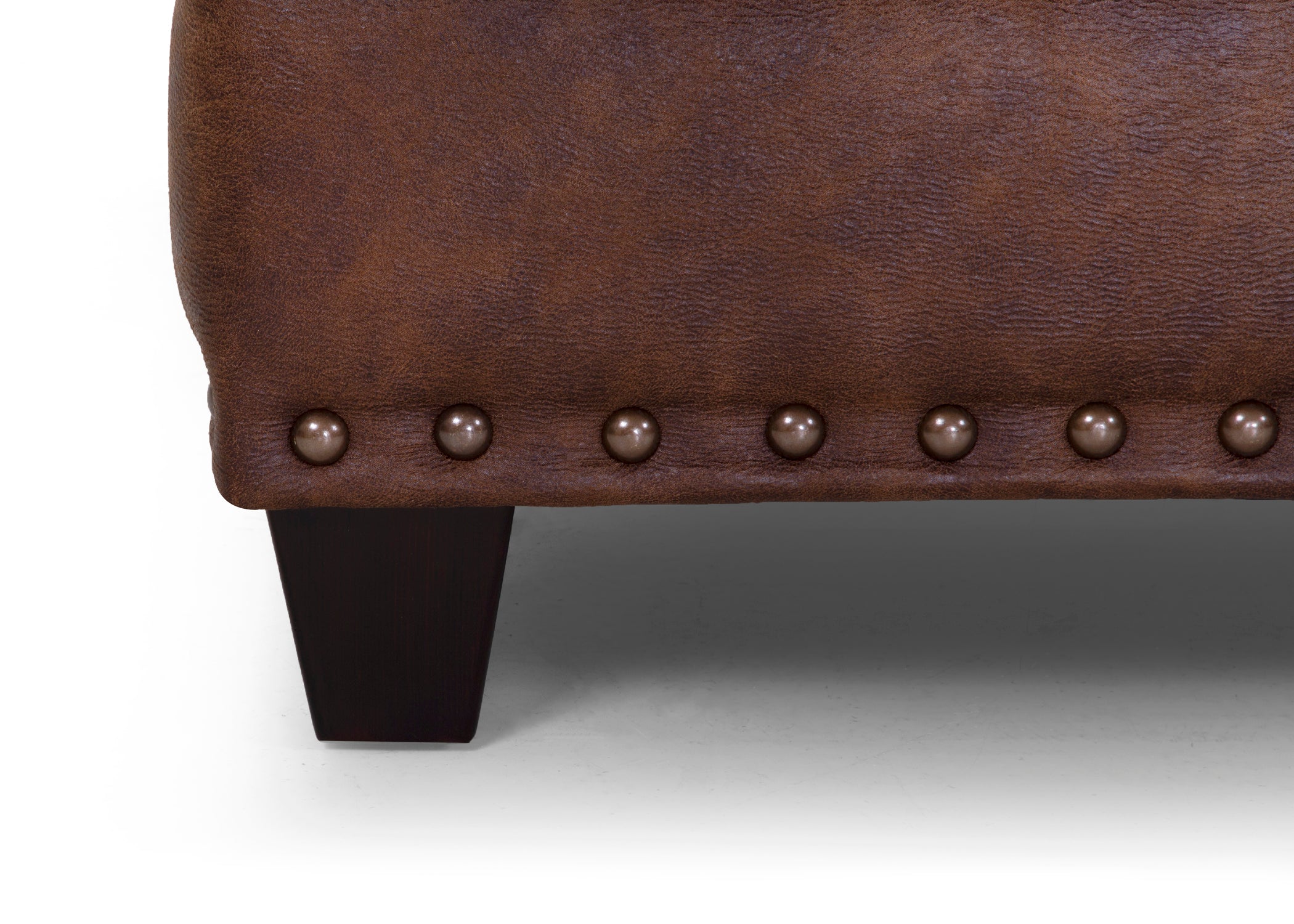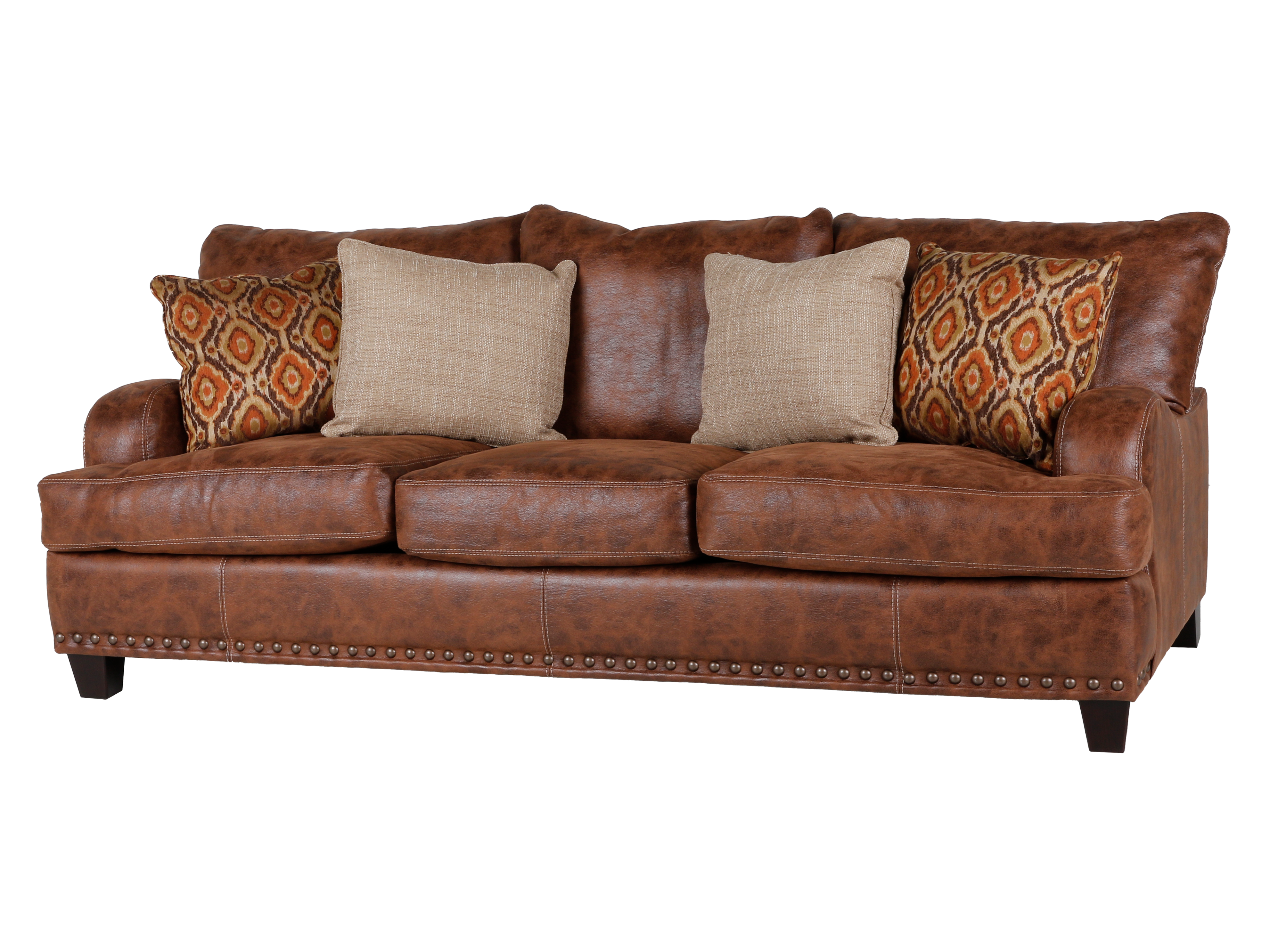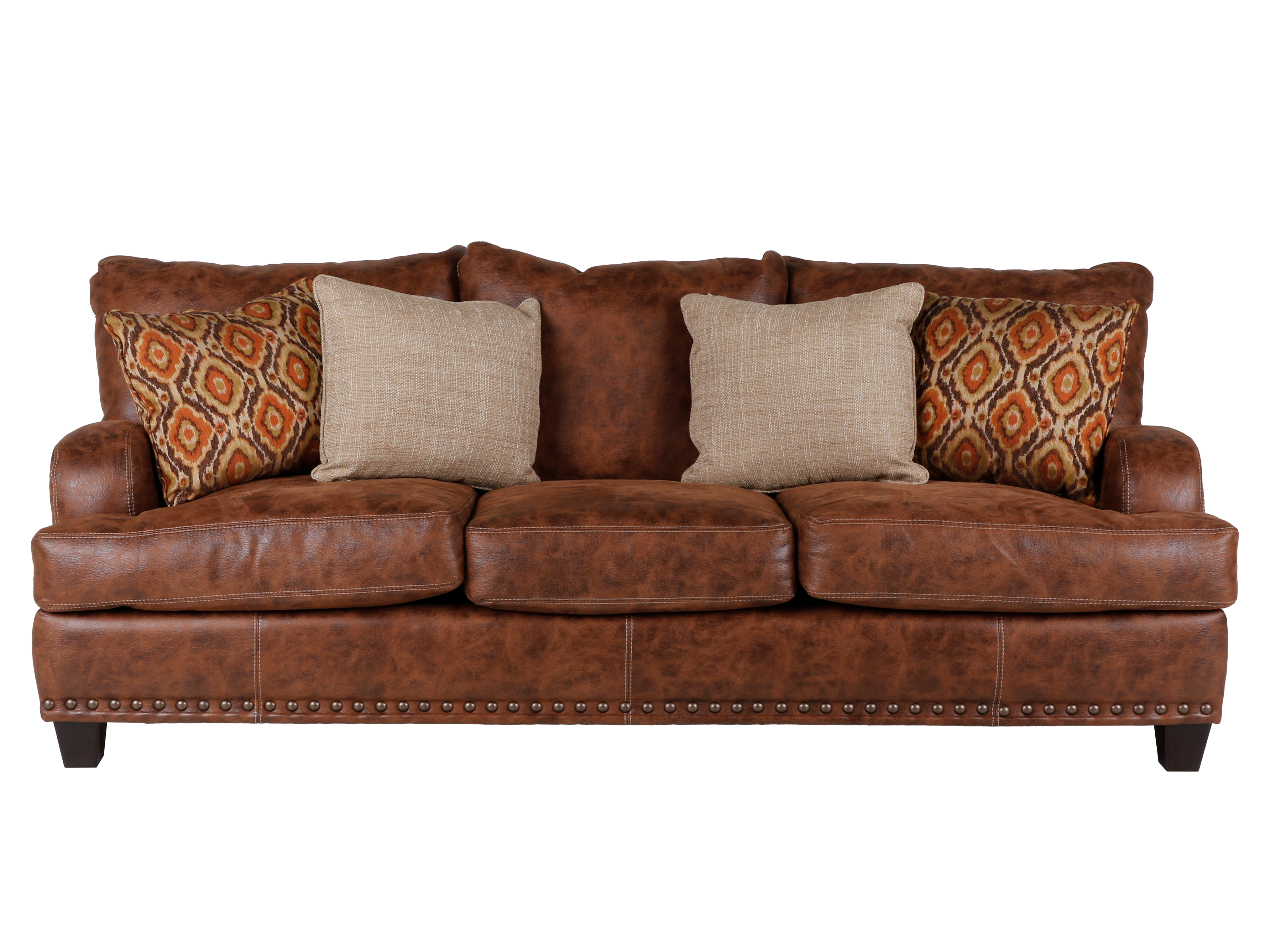 This sofa and loveseat set offers a classic look with its swoop track arm design, dark cherry high legs, and antique brass nails. This collection also features reversible seat and back cushions for increased comfort and durability. Seat cushions are extra thick and designed for plush, sink-into comfort.