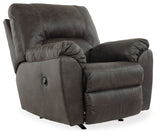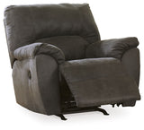 With plush cushions and angled pillow top arms, this rocker recliner takes comfort to a whole new level. Faux vintage leather requires minimal care, making this piece ideal in homes with children and pets. The seat reclines with the pull of a tab, putting total relaxation at your fingertips.