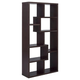 Kick your home decor up a notch. This striking bookcase has a bold, geometric design that adds an artistic accent to any room. With convenient shelves, it offers convenient storage for anything from books to memorabilia to trophies and more. Crafted from MDF, particle board, and engineered veneer, it's as sturdy as it is stylish. Available in four stunning shades, there's an option to match the color palette of any home.
