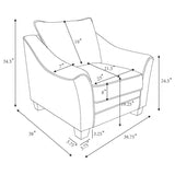 Cozy up in this well-tailored modern accent armchair, perfect for a living room seating area. The chair boasts a textured boucle fabric, offering impeccable texture and on-trend appeal, perfect for camouflaging wear. Its sloped arms, reminiscent of a chic profile, and boxed seat cushions provide an inviting look and feel, enhanced by tall back pillows all finished with welt trim. The chair sits on tall block legs, providing a sturdy foundation and a dark finish that completes the look. These legs include plastic glides that protect floors, ensuring the chair is not only stylish but also practical.