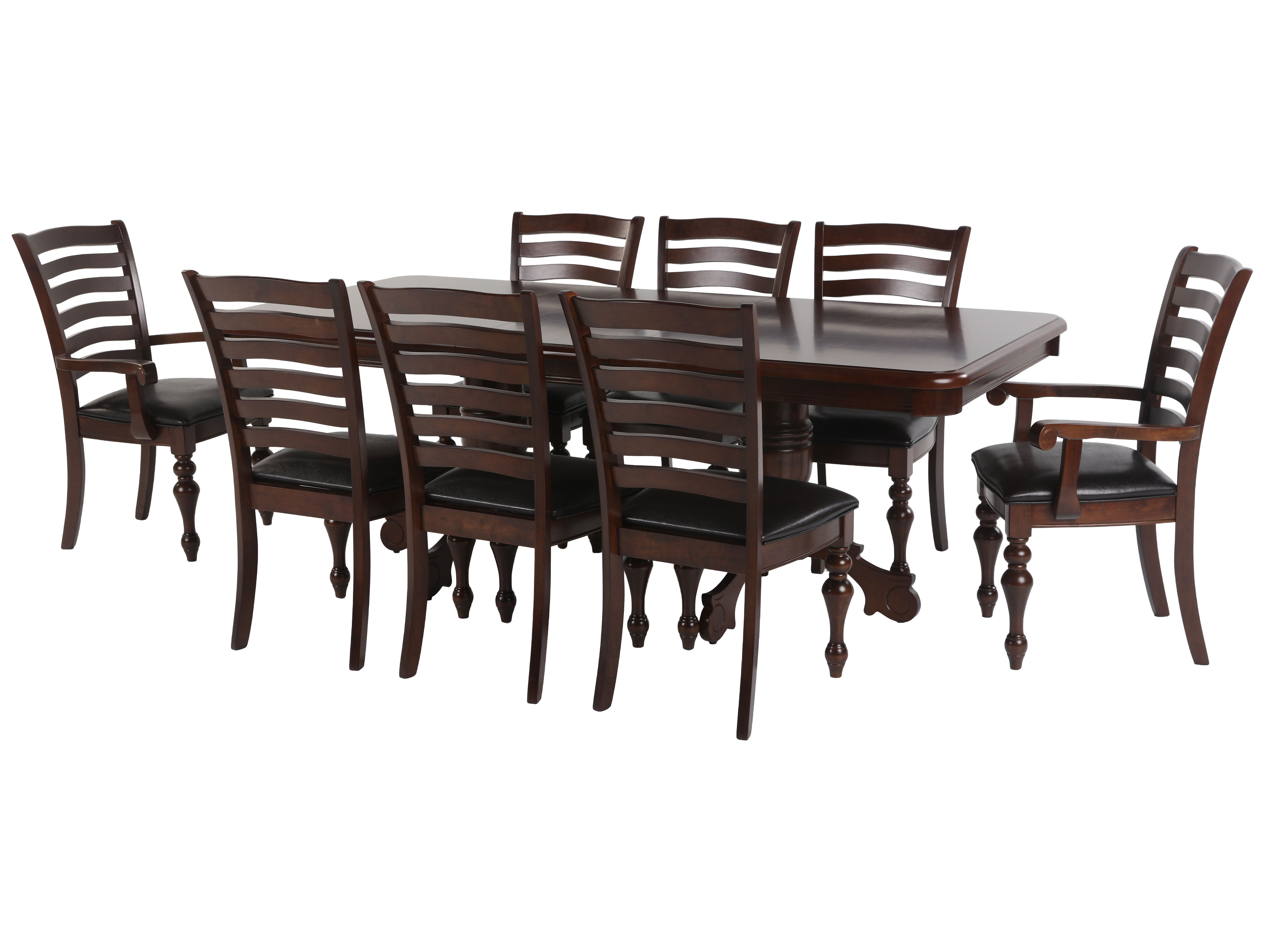 Traditional 9-Piece Dining Room Set with Extendable Table & Ladder Back Chairs