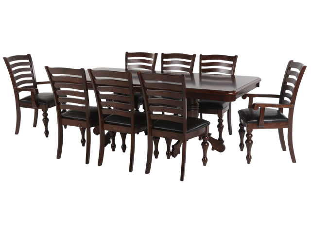 Includes: Dining table, 6 side chairs, 2 armchairs.