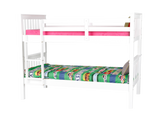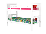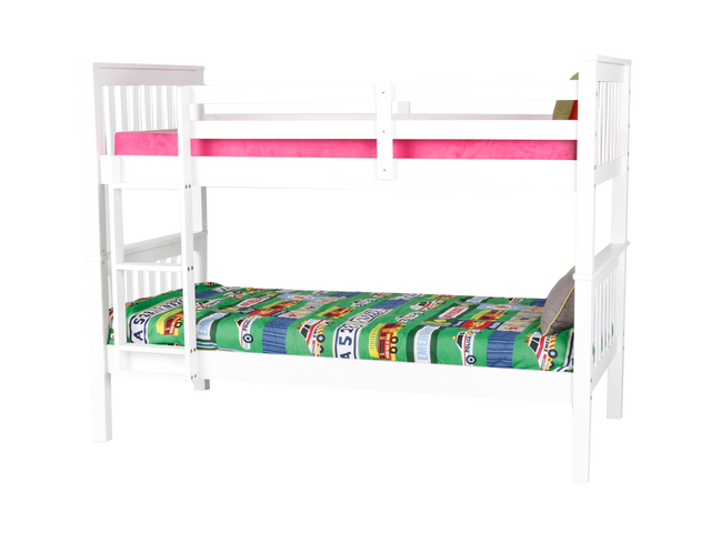 - Space-saving twin-over-twin design in a bright, kid-friendly white finish