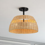 - Stylish Design: Features a black metal finish paired with a rattan shade for a unique look.