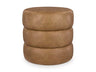 Flair and function are packed into one small package with this accent ottoman. Faux leather upholstery lends a casually cool vibe, while a swivel base puts a twist on everyday comfort. It works great as a footrest or spare seat when hosting guests. Short on surface space? This piece can function as an ultra-chic accent table in a pinch, supporting remotes and other accessories in style.