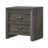This bedroom collection encapsulates a blend of contemporary design and rustic charm. The centerpiece, a bed with a distinguished chevron patterned headboard, evokes a sense of craftsmanship and texture, infusing the space with character. Flanking the bed are matching pieces, each exhibiting clean lines and a finish that suggests a lived-in elegance. The dresser, complemented by a substantial mirror, along with the tall chest, offer ample storage solutions with understated metal handles that enhance the modern farmhouse aesthetic. A nightstand completes the set, its compact design making it a practical addition to the suite.