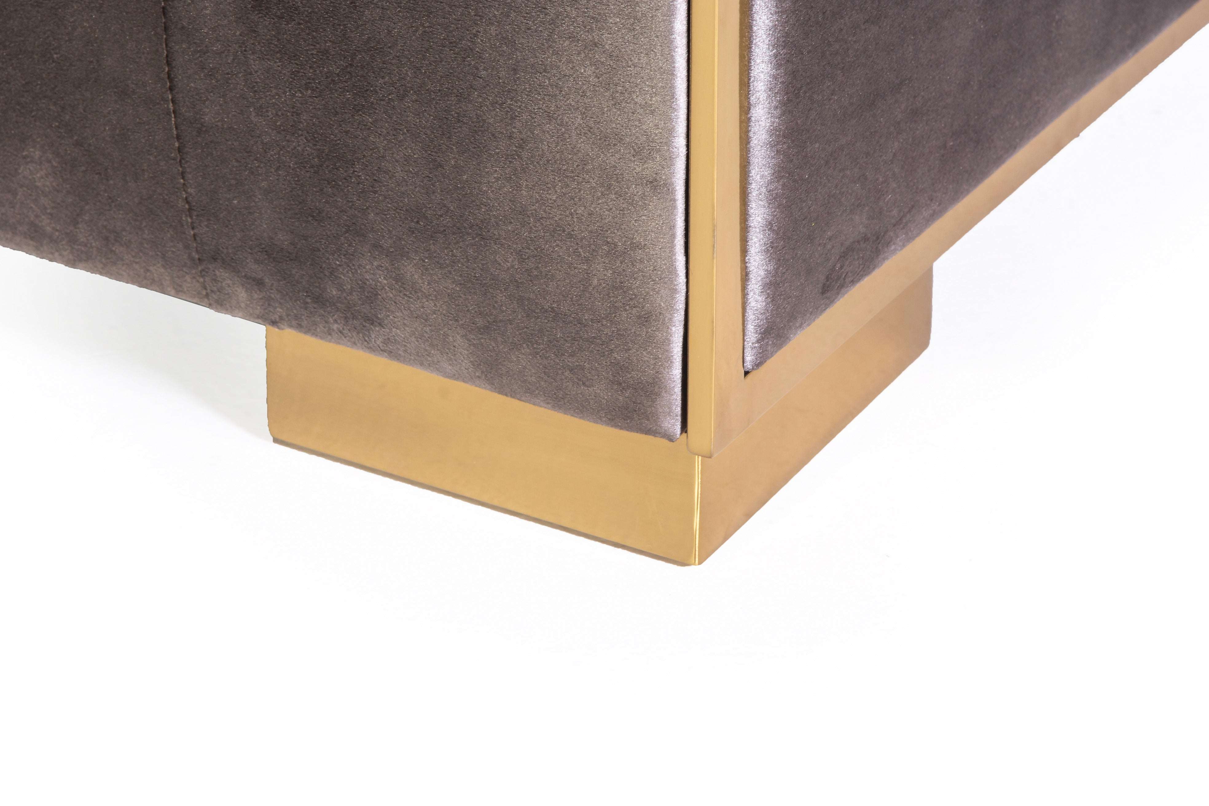 Elegant and stylish, this sectional will transform any living room into a luxurious lounge. Featuring soft fabric , this sofa injects multifaceted texture into your overall design scheme. Velvet upholstery and seating padding with high-density foam add maximum comfort for you when lounging after a long day. Come with the solid wood frame and stainless steel legs, this sofa delivers sturdy support and durable performance. Lend a touch of luxury in your living room with this sofa.