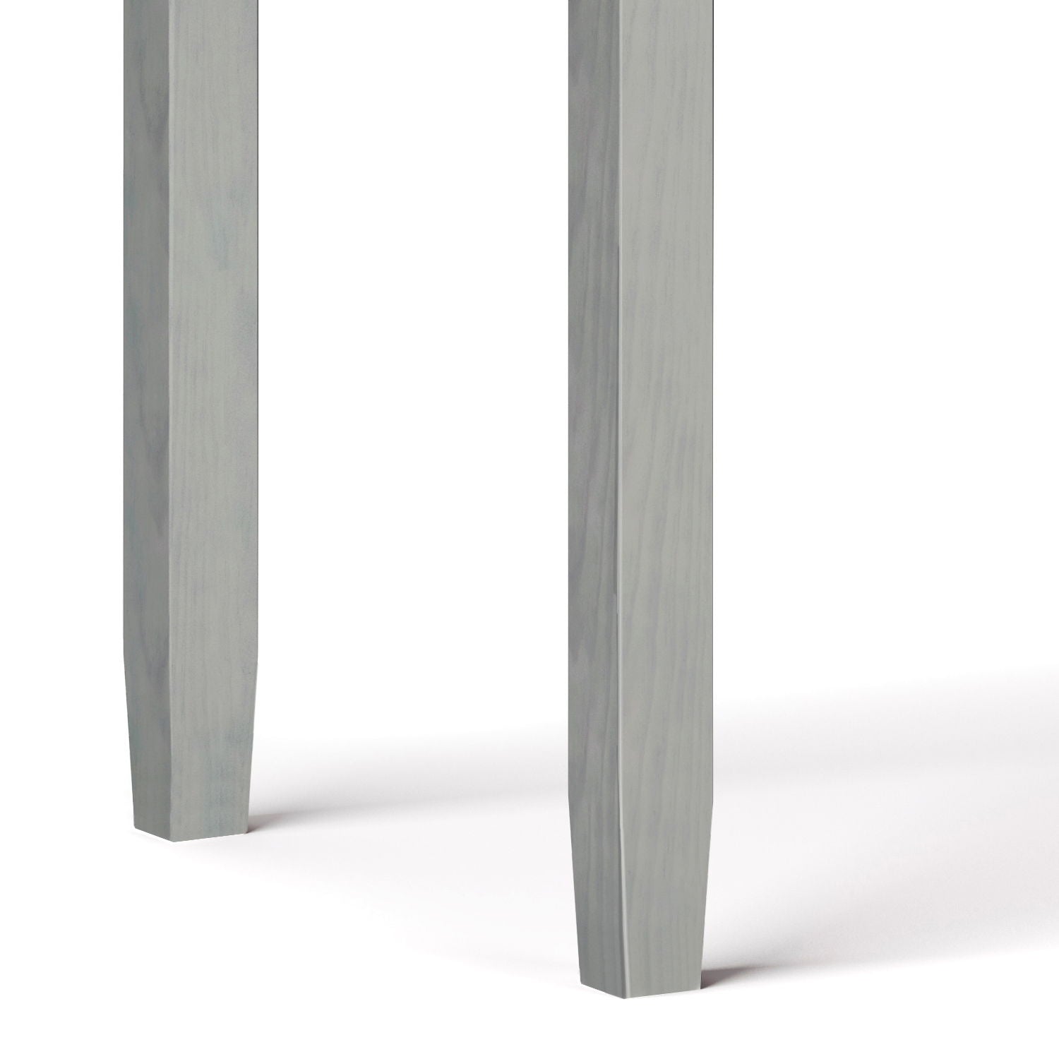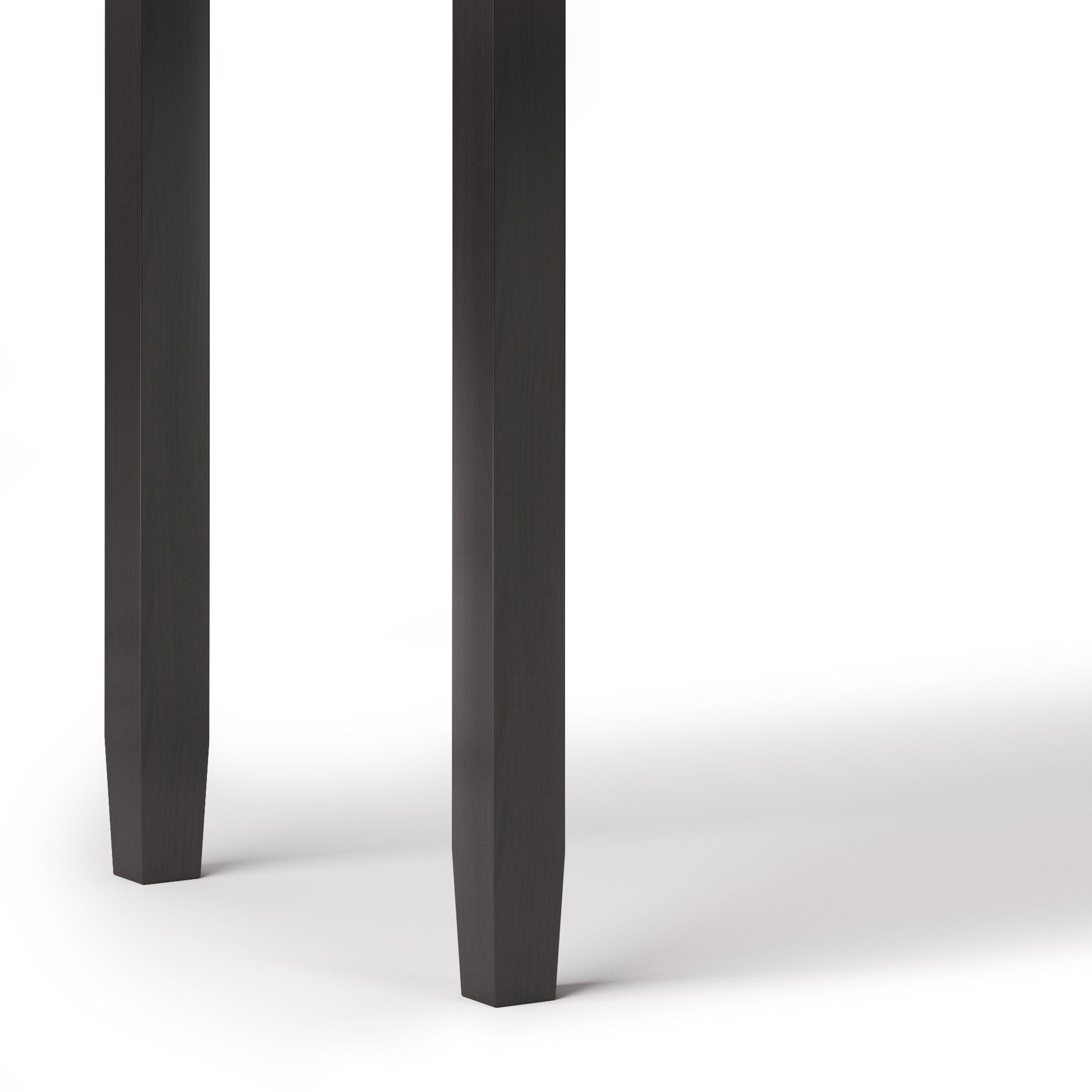 - Transitional Style features shaker style drawers, Brushed Nickel knobs, square tapered legs and square edged table top
