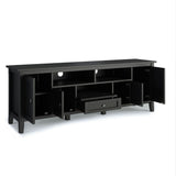 - Extra wide TV Stand is perfect for TVs up to 80 inches, includes cord management cut-outs for easy installation of TV and media components.