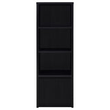 This modern entertainment center combines a sleek TV stand with two matching media towers, offering style and functionality. Finished in a bold black with a scratch-resistant eco-friendly laminate veneer, this unit provides ample storage and display options. The TV stand features cabinets, an open shelf with cable management, and a wide drawer, while each media tower includes open shelves and a bottom cabinet for organized storage. Perfect for creating a cohesive entertainment space in any living room.