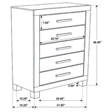 Bring warm rustic charm and rugged character into your bedroom with this five-drawer chest. Designed with a sturdy silhouette, it features a rustic golden brown finish that highlights natural wood grain details. Five spacious slide-out drawers keep clothing and essentials neatly organized, while the bold wooden bar handles add a distinctive touch. Supported by block legs, this chest combines durability and style, making it a versatile piece for rustic, transitional, or modern farmhouse interiors.