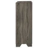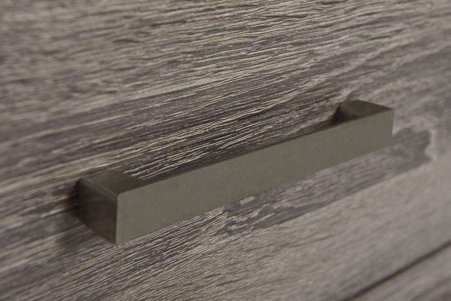Upgrade your storage options for clothing and accessories with this transitional four-drawer chest. It delivers restrained, understated style with organic appeal, owing to its brown oak wood grain finish. Laminate surfaces add durability and resistance to scratches and dents from everyday wear and tear. Mitered trim surrounds the front of the case, while angular block legs add visual appeal and precision. Bar handles complete the look with a touch of smooth contrast.
