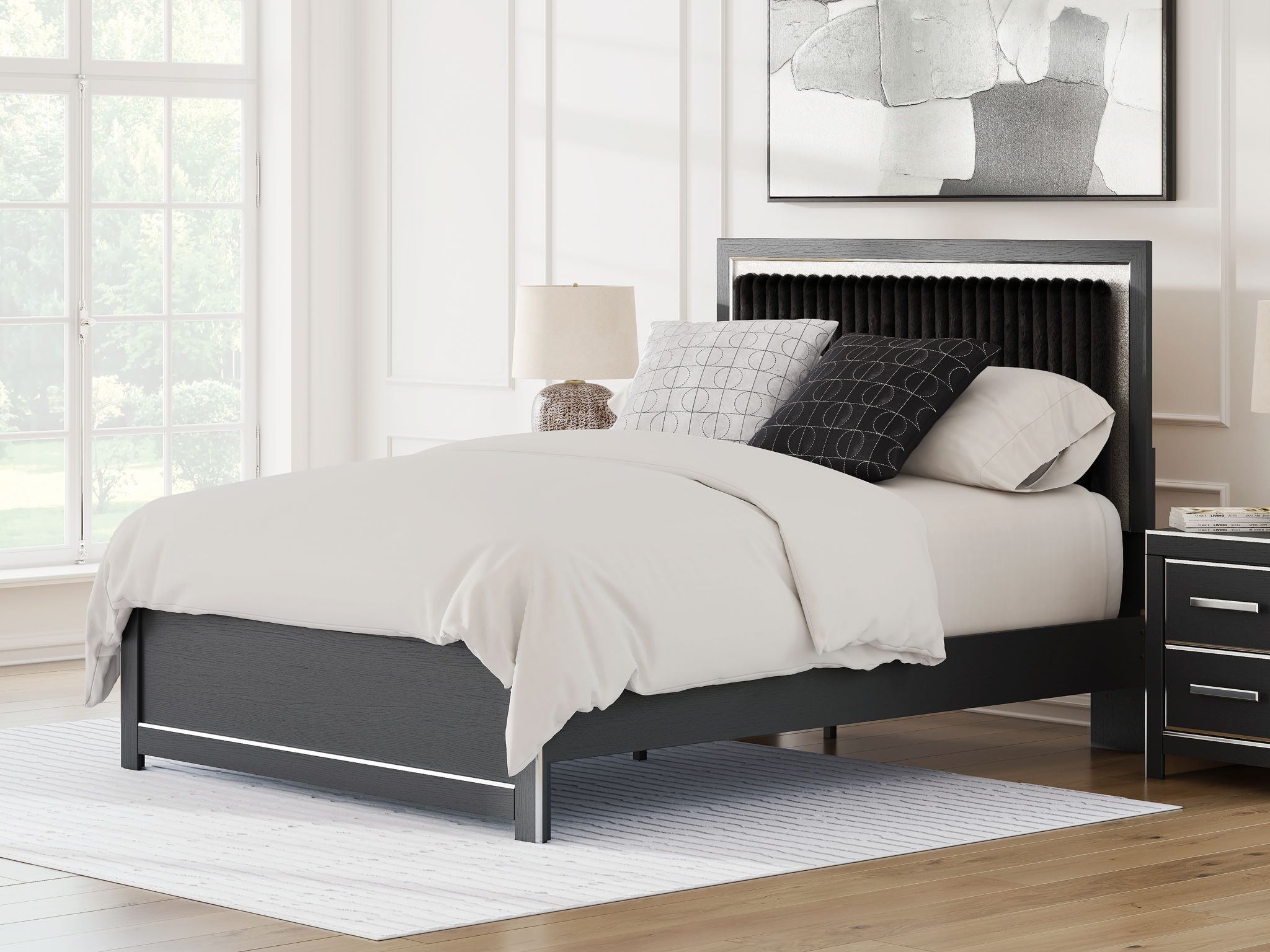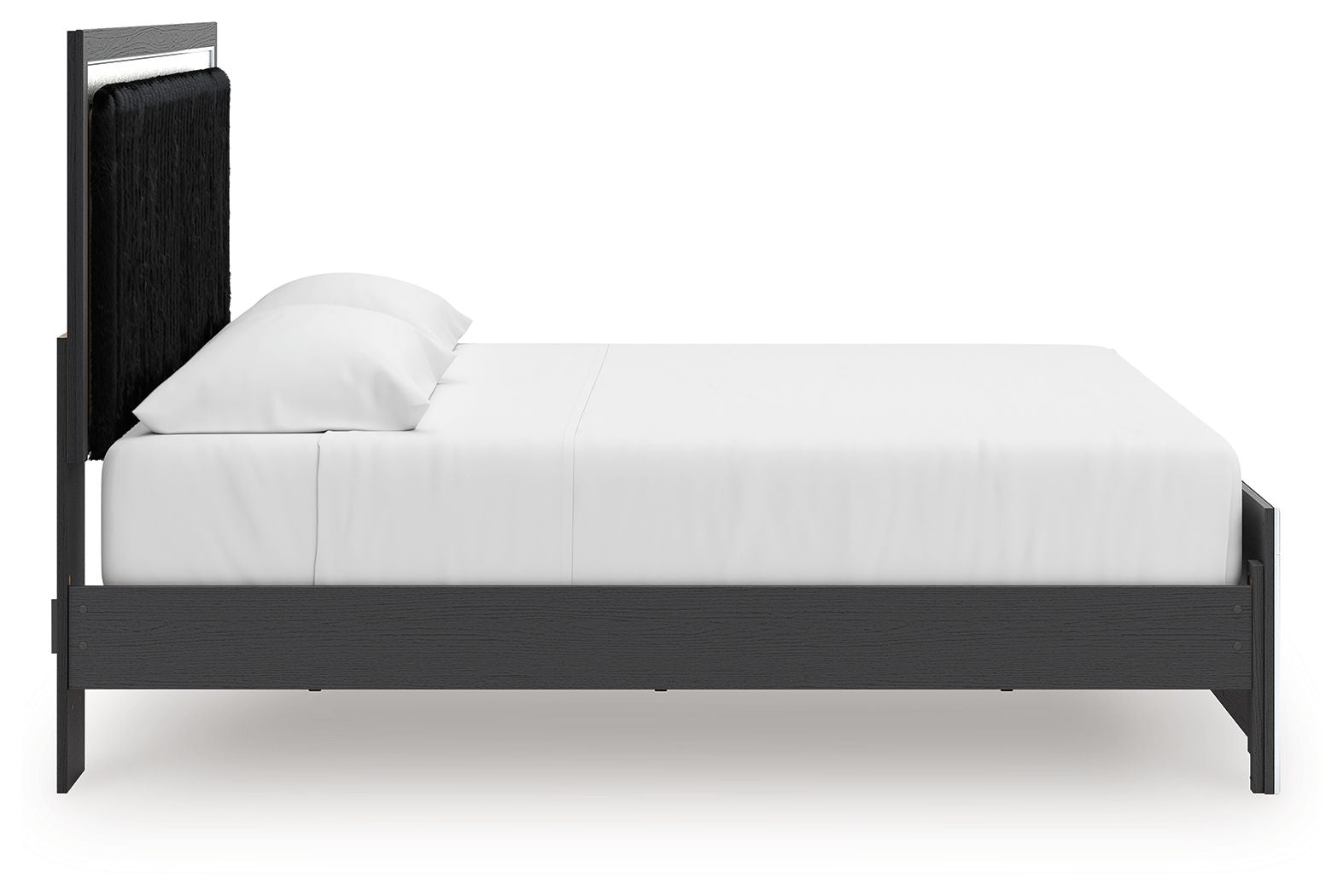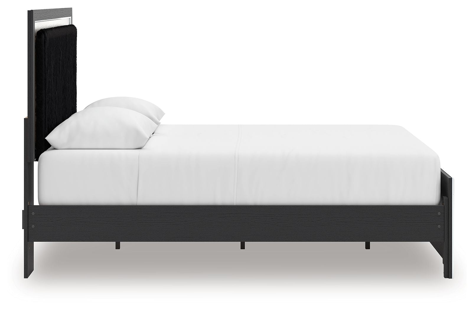 Zuraleus - Queen Upholstered Panel Platform Bed With Roll Slats - Black
