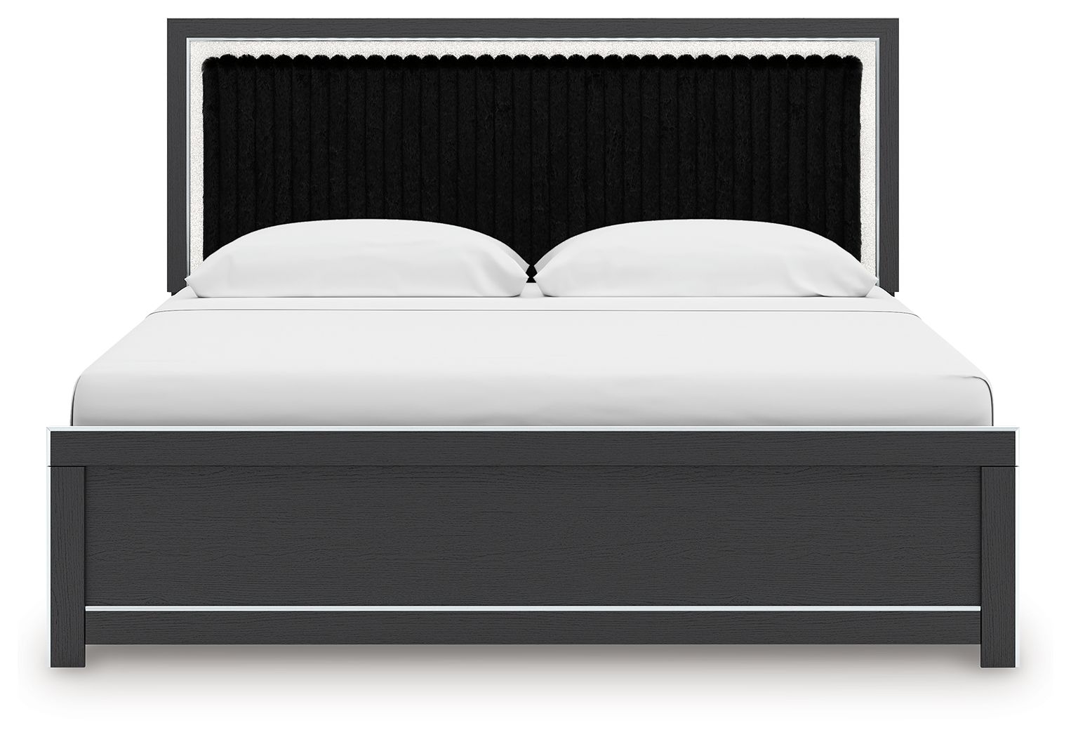 Zuraleus - King Upholstered Panel Platform Bed With Roll Slats - Black